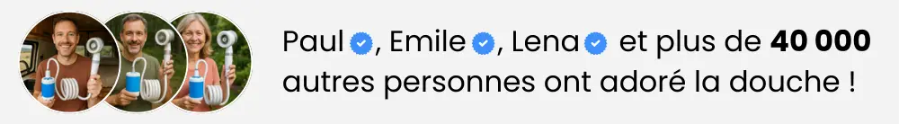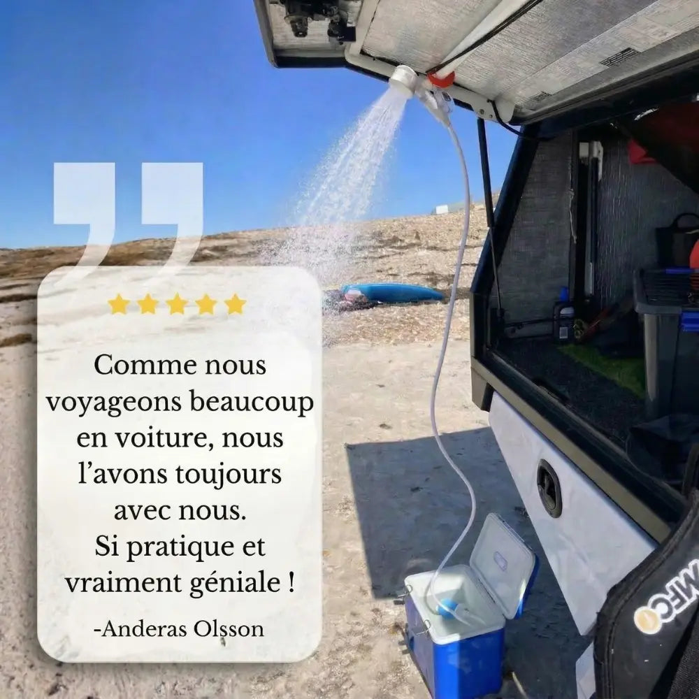 Vous pouvez tout à fait utiliser de l'eau tiède (par exemple, de l'eau chauffée au soleil dans un récipient) pour une douche plus confortable. Cependant, il est fortement déconseillé de plonger la pompe dans de l'eau bouillante afin de ne pas endommager ses composants internes.